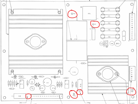 There are several test points on the board (shown in the red circles):
